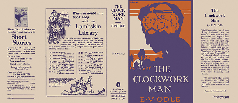 Today we would consider it silly to build an AI being with clockwork technology. In the 1950s Philip K. Dick imagined robots made with vacuum tubes and tape loops, which we now groan at. Nowadays, we imagine AI beings constructed with computer silicon circuits. Fifty years from now, readers might consider using silicon circuits just as silly as clockwork or vacuum tubes. Remember, God made man with dust, and Mary Shelley had Frankenstein assembled his creature from stolen body parts. Our speculation about the future is always tied to what we know at the time. Reading The Clockwork Man made me think about what E. V. Odle had to work with in 1923.