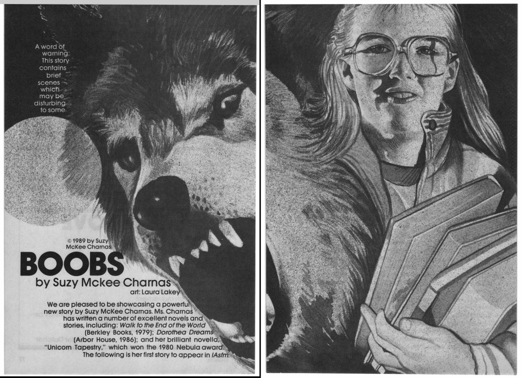 Today’s story at the Best Science Fiction and Fantasy Short Fiction group on Facebook is “Boobs” by Suzy McKee Charnas. You can read it here. In the first comment, Jeppe said he was surprised it won the Hugo, which was my reaction too. It is a slight story about a girl hitting puberty and becoming a werewolf, but it’s been reprinted quite a bit, indicating its popularity. The group is reading Hugo and Nebula Award Winners from Asimov’s Science Fiction edited by Sheila Williams.