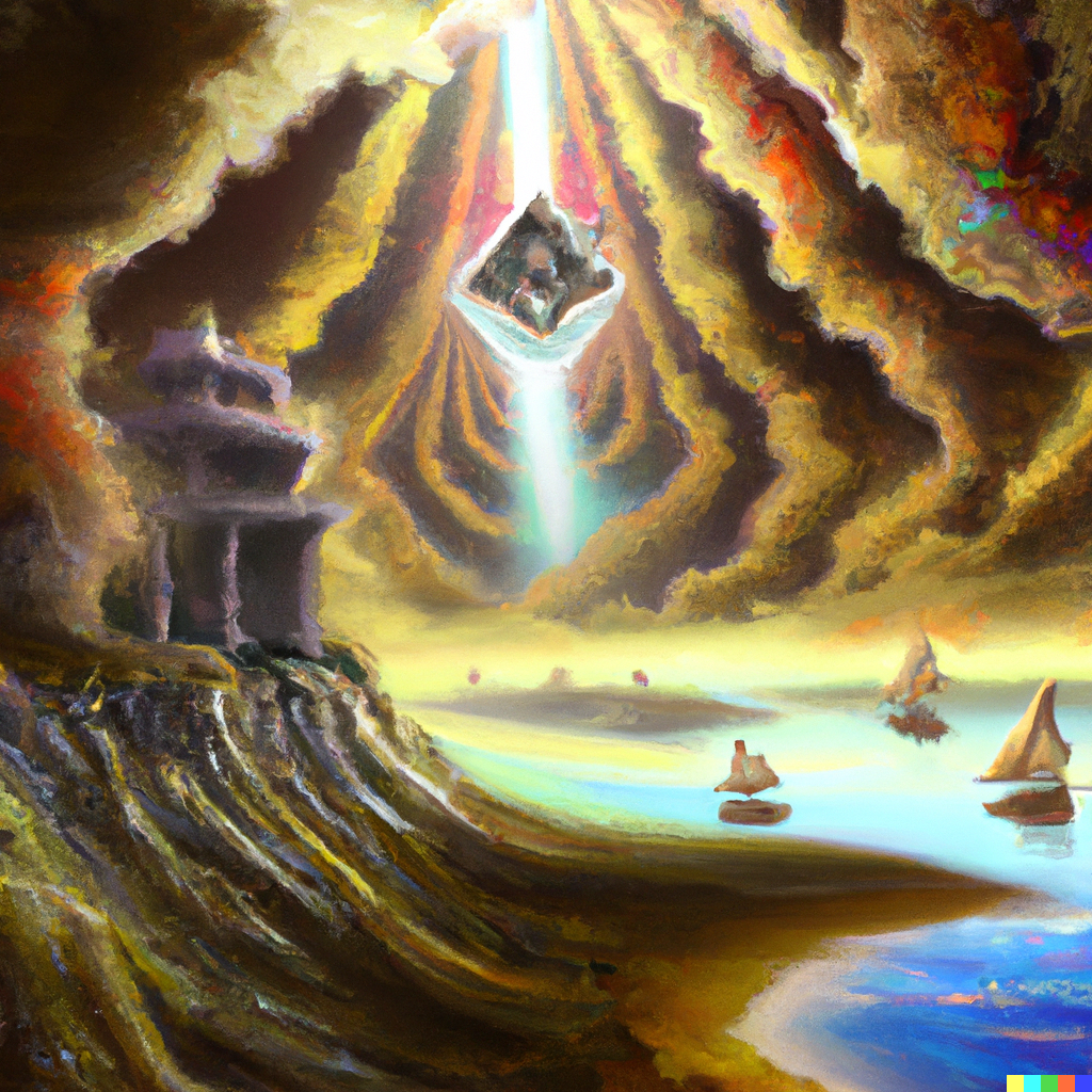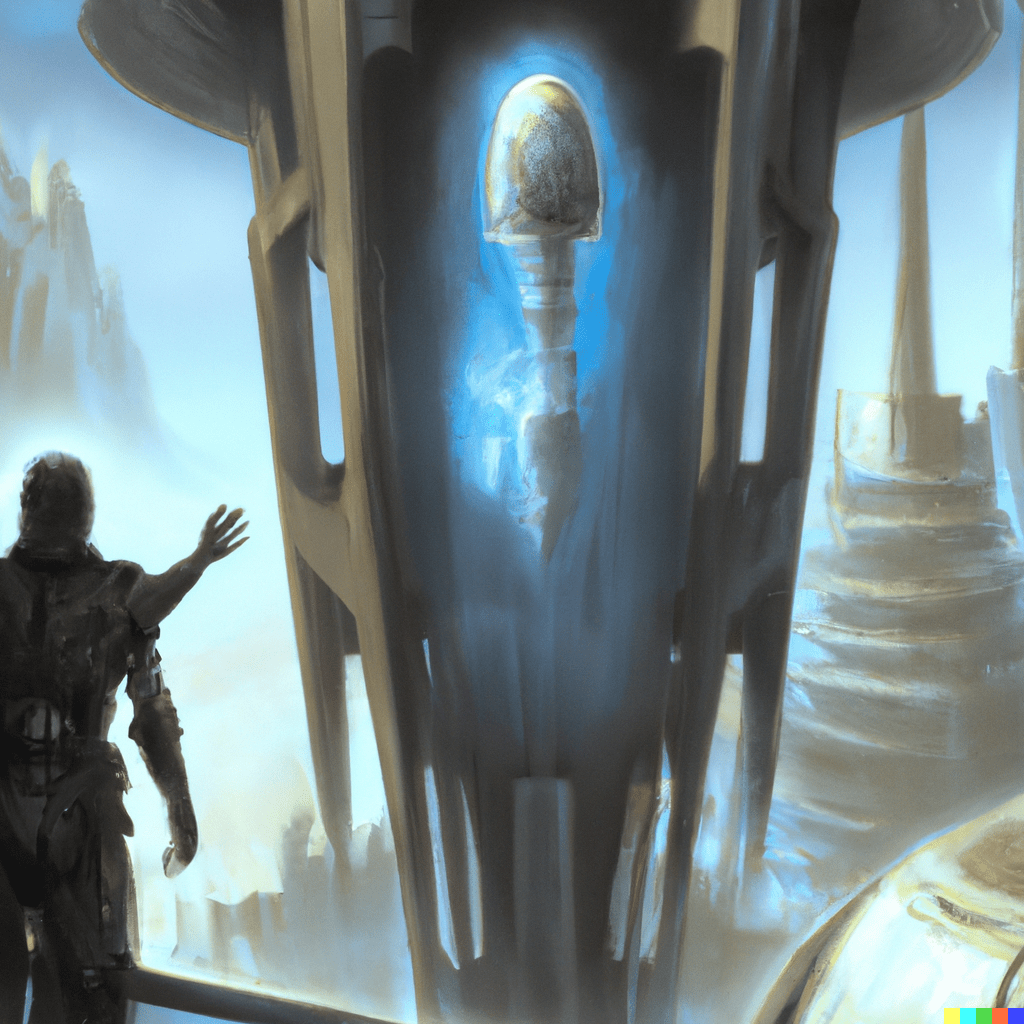 If science fiction was a religion produce a painting that is science fictionally inspirational.