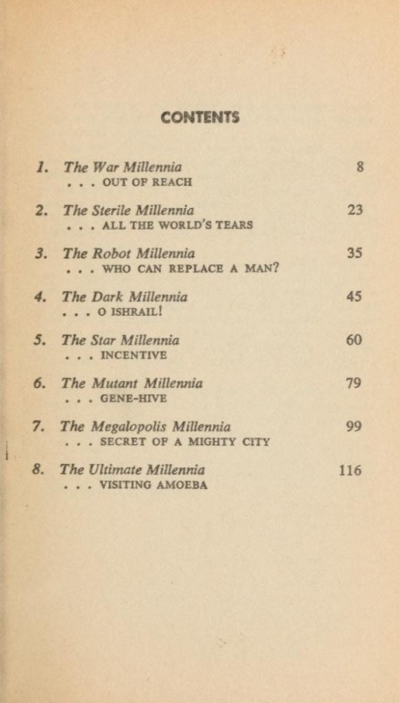“All the World’s Tears,” is the second story, under the theme “The Sterile Millennia.” For being such a short short story is dense with ideas, atmosphere, and imagery. The opening sequence, tells us the ending but we won’t know that until we get to the last page and read it. Aldiss has painted a future Earth of stark contrasts. The setting is the far future, the last day of summer of the 44th century. Earth no longer supports billions of humans, just hundreds remain, living in a high-tech society under the control of robots. No one is poor, but civilization is in decay.