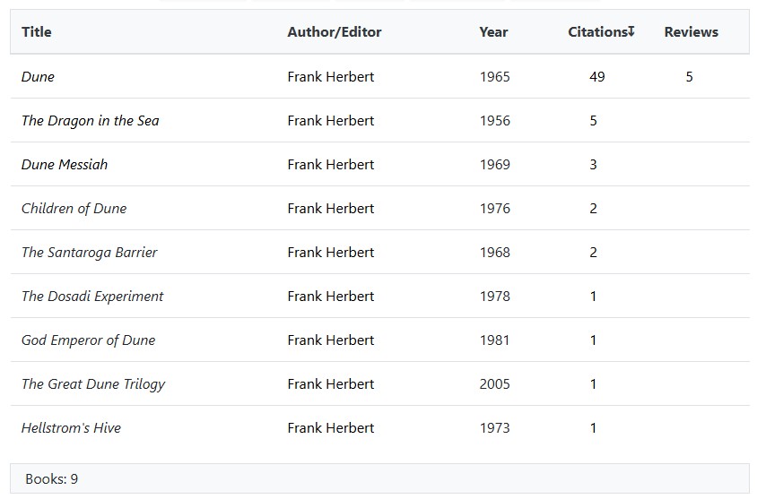 Checking our database, The Dragon in the Sea received five citations, the second most of Herbert’s novels. The citations were from: