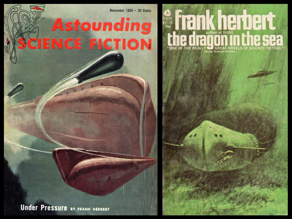 I read The Dragon in the Sea because of a review at Science Fiction and Fantasy Remembrance (Part 1, Part 2, Part 3). Herbert’s novel was titled Under Pressure when it ran as a serial in Astounding Science Fiction (November & December 1955, January 1956). I didn’t want to read another science fiction novel at the time because I had several nonfiction books I was anxious to read. But Brian Collins’ review intrigued me. Collins is one of several bloggers who review old science fiction. His focus is on reviewing stories from science fiction magazines, something I also do. We’re part of an extremely tiny subculture that remembers a rather obscure art form.
