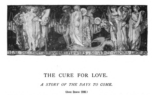 “A Story of the Days to Come” is a love story between Elizebeθ Mwres (Elizabeth Morris by the spelling of 1899) and Denton. In the first section, Elizabeth’s father, Mr. Morris, wants her to marry Bindon, a man in his forties. She is only 18, and Elizabeth wants to marry the handsome young man, Denton. Mr. Morris hires a hypnotist, who makes Elizabeth forget Denton and desire Bindon instead; however, Denton eventually wins her back. In the second section, Elizabeth and Denton try living in the abandoned countryside because of their romantic notions from reading 19th-century books. Wells assumes technology will cause everyone to move into the cities except for the food corporations. In the third second, Elizabeth and Denton return to live on her inheritance as a middle-class couple. The fourth section sees them fall into poverty, giving Wells a chance to describe the lower-class world. In the final section, Wells contrives a happy ending for the couple.
