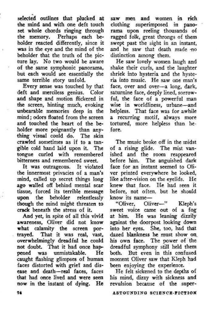 In the 1950s there was a lot of talk about crime being caused by society, and that criminals were a product of bad biology or a bad environment. Damon Knight’s unnamed narrator is an awful person, but he gets our sympathy. Unlike the tortured child in “The Ones Who Walk Away from Omelas,” the unnamed narrator isn’t the engine of utopia. Or is he? Wouldn’t a perfect utopia be dull and boring? What if evil is needed as the engine of goodness? I’m reminded of a phrase, “What if our world is their heaven?”
