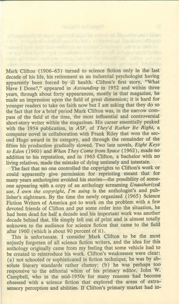 “Silent Brother” wasn’t a finalist for the Hugo award, and it’s never been anthologized for a major theme or retrospective anthology. Nor is it on any fan poll for being an all-time great SF story. Now, do you sense the relative nature of good? What I want to find are the most memorable, most powerful of the SF stories from 1956 that most people consider good. I liked “Silent Brother” a fair amount, but I wouldn’t anthologize it if I was creating an anthology of the best SF short stories of 1956. I might include it in a theme anthology if it worked well with the other stories.