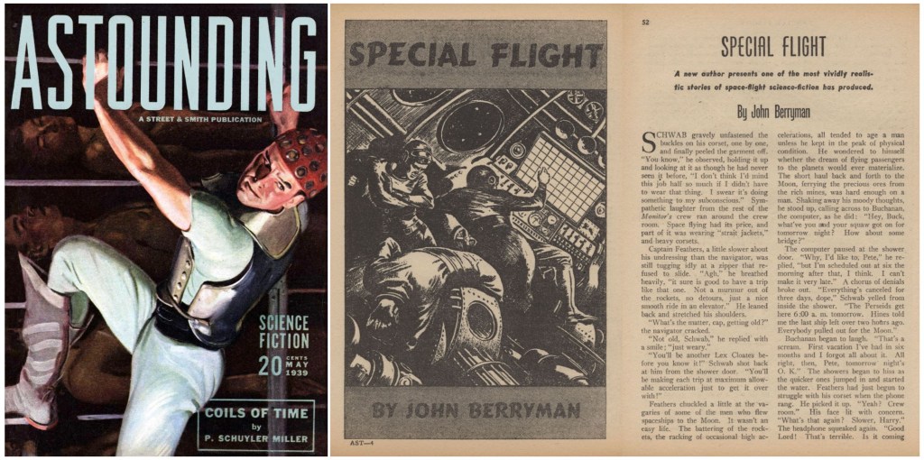John Berryman, according to ISFDB, only published 21 science fiction stories, and some of them were occasionally reprinted. However, John Berryman is not a name I remember. He is a forgotten author. So why read his story in 2023? I’ve never read “Special Flight” before, or even heard of it, but it’s an impressive science fiction for 1939 if you think about it in a certain way. “Special Flight” was first published in the May 1939 issue of Astounding, just months before the July issue that many consider the first issue of the Golden Age of Science Fiction. Then why didn’t Hartwell choose one of the more famous stories from that year?