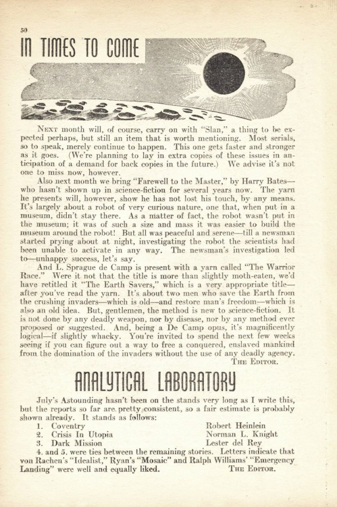 So, who were the movers, shakers, and creators of 1950s science fiction? I don’t think the major players are as obvious as they were in the 1940s.