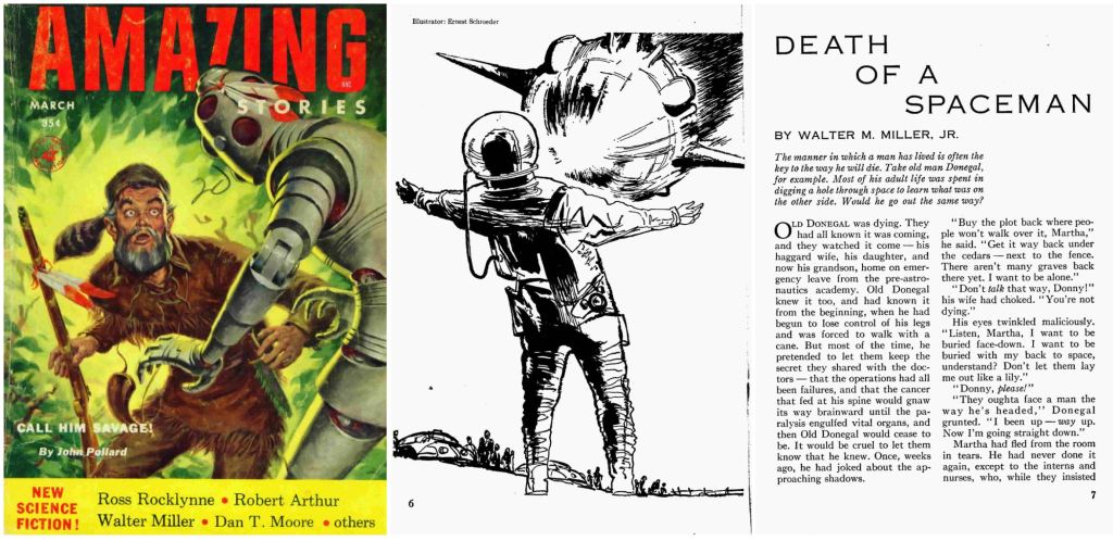 Stand up comics have an understanding of how to trigger laughs. I suppose short story writers have a sense of how to trigger emotional reactions in readers. Did Walter M. Miller, Jr. consciously know what he was doing when he wrote “Death of a Spaceman?” Or is fiction writing mainly the work of the writer’s unconscious mind communicating with the unconscious mind of their readers? Did Miller intentionally contrive every trigger that generated the emotions I experienced?