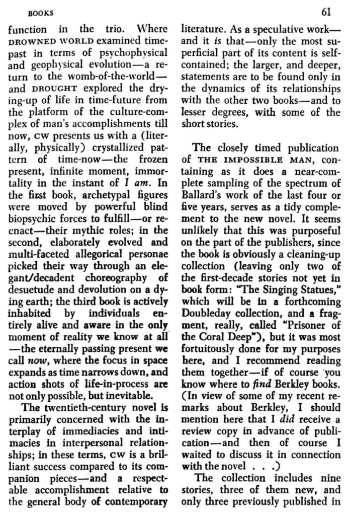 But that’s only one level. Fiction usually works on multiple levels. Bradbury also works to describe the past, his past, in the kind of detail that will trigger memories in his readers. And there’s a level beyond that which Bradbury entertains us. It’s the writing.